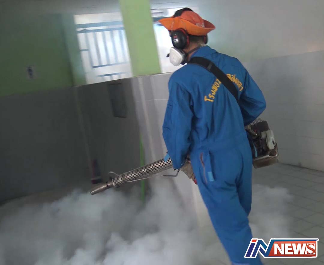 รพ.สงขลาพ่นสารเคมีกำจัดยุงลายแหล่งเพาะพันธุ์ลูกน้ำยุงลายทั้งโรงเรียน