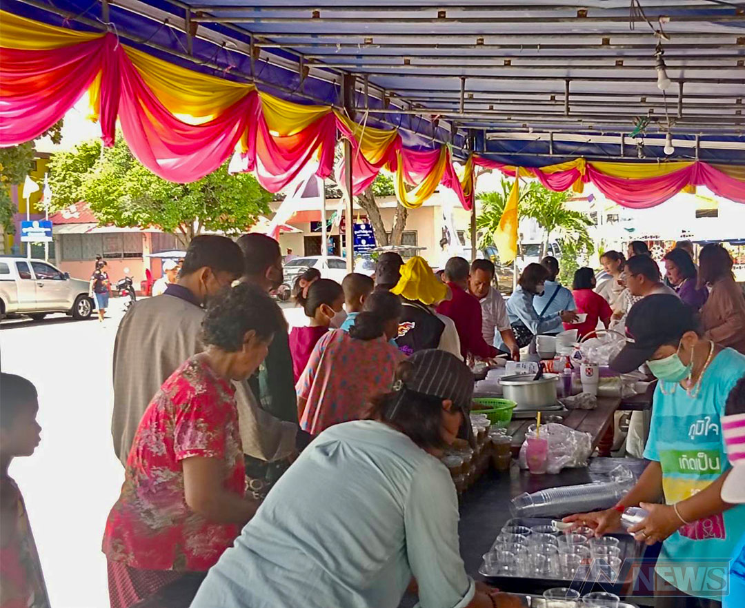ผู้ใจบุญเปิดโรงทานเลี้ยงคนมาทำบุญที่ วัดช่องแสมสารชลบุรีเนื่องในวันแม่