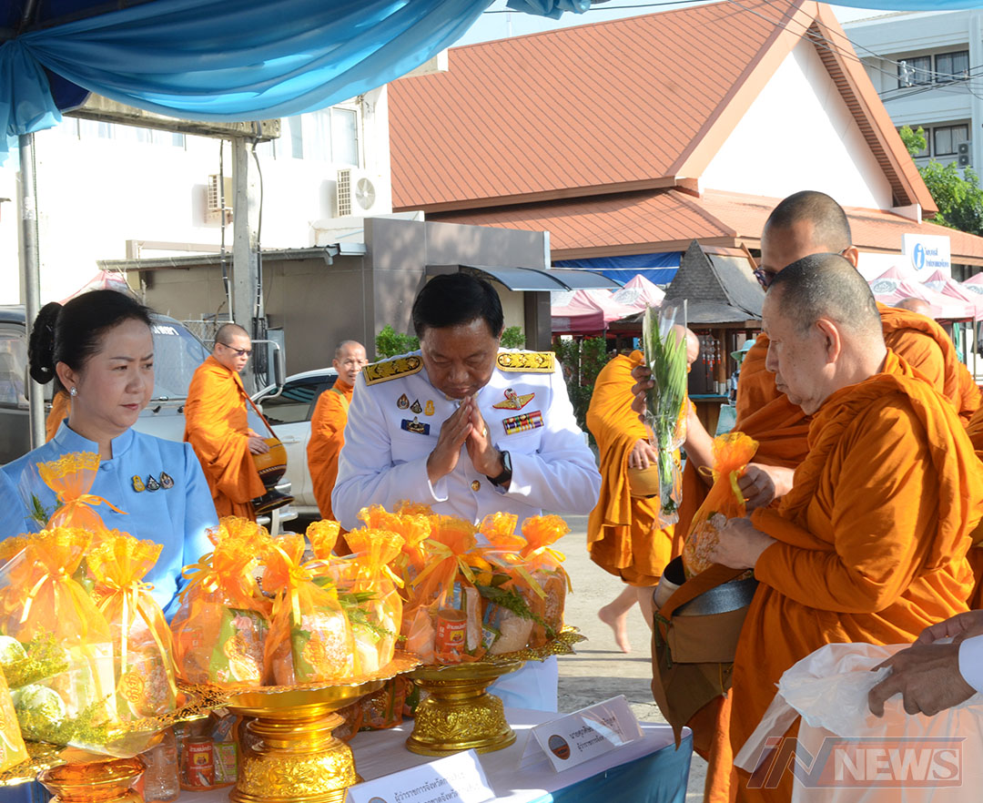 ผู้ว่าร้อยเอ็ดทำบุญตักบาตรพระสงฆ์92รูป เนื่องในโอกาสวันเฉลิมพระชนมพรรษา
