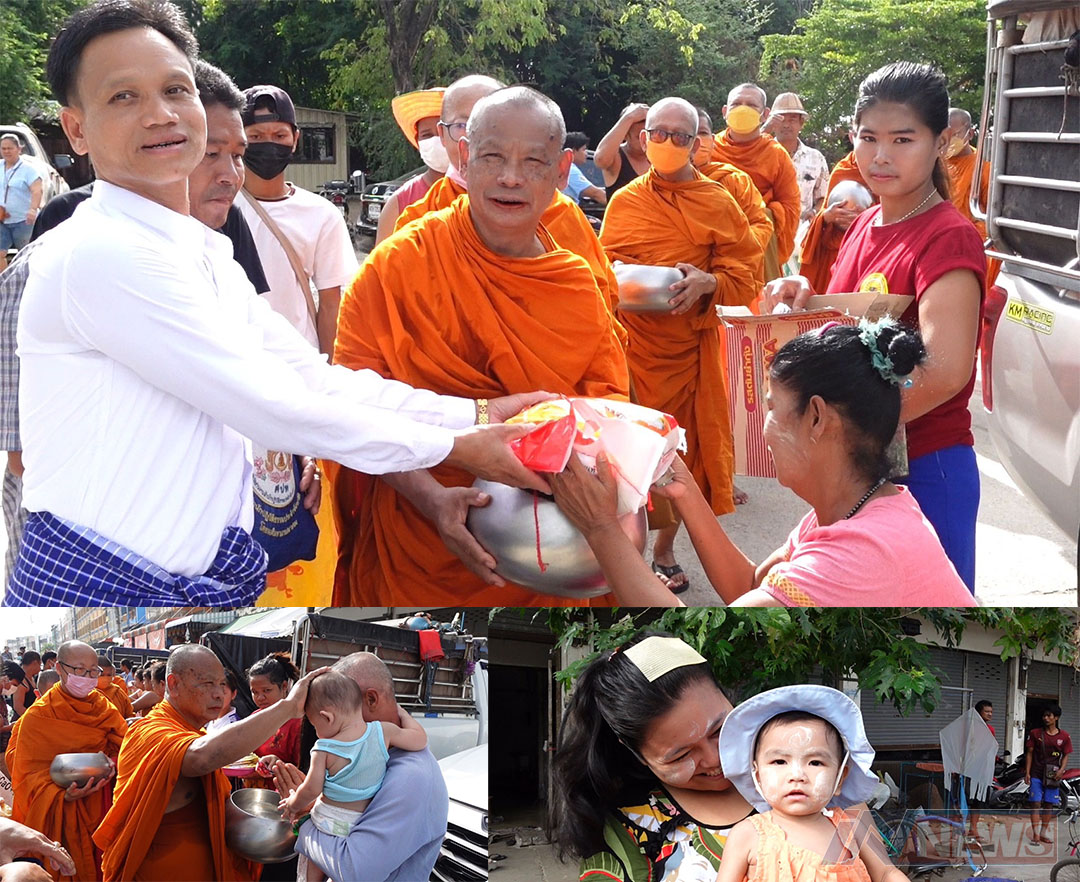 แรงงานพม่านิมนต์พระวัดไผ่หูช้างทำบุญ ใส่บาตรวันแม่หญิงตั้งครรภ์ขอพร