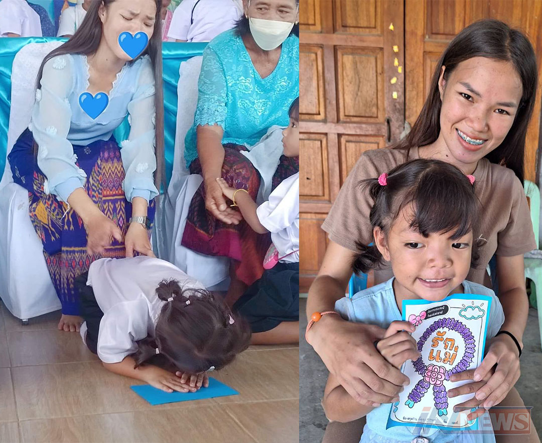 กราบถูกแล้ว!เด็กน้อย5ขวบฮือฮาทางเน็ต หลังกราบแม่ผิดทางกิจกรรมโรงเรียน
