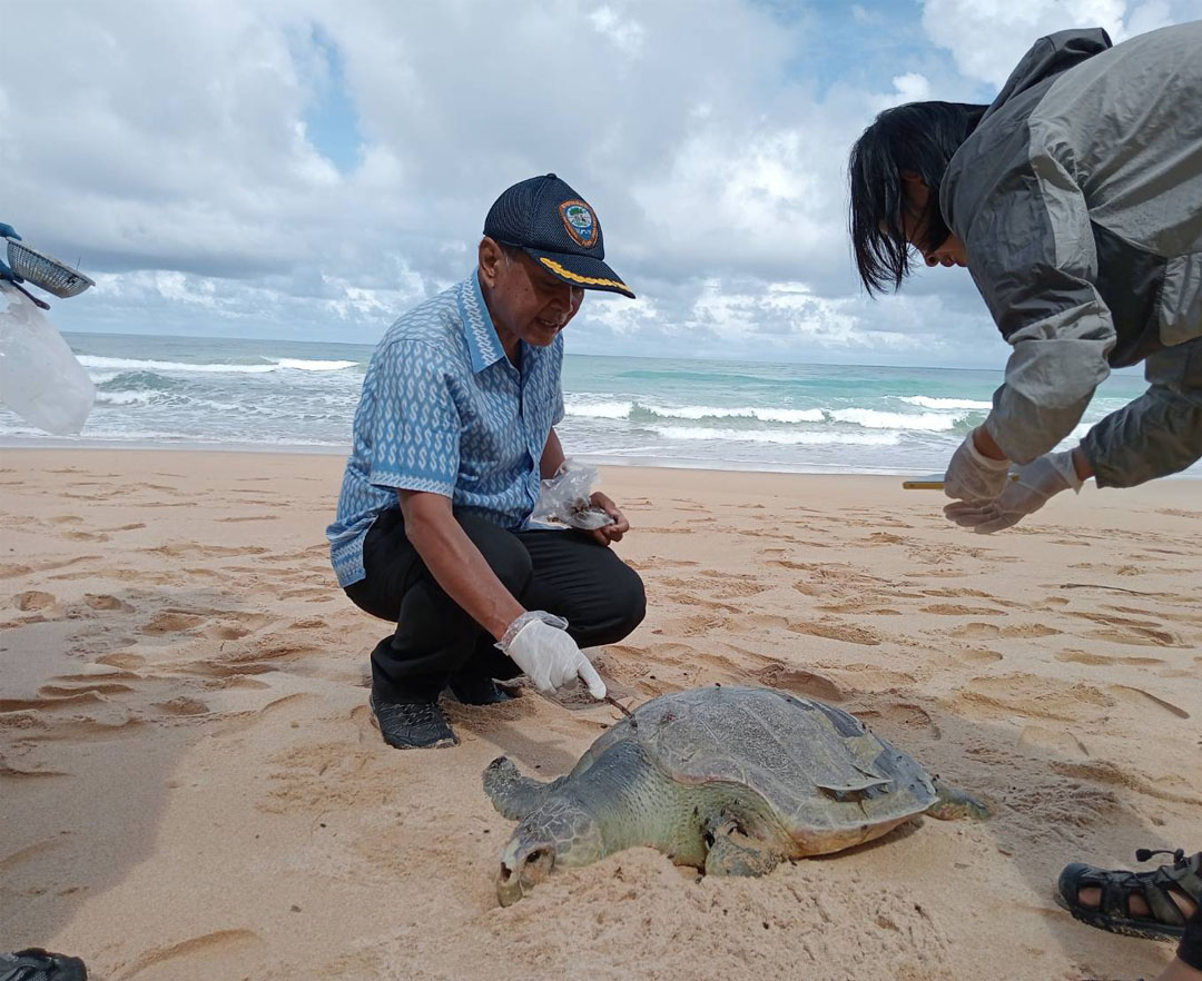 ภารกิจจัดเก็บคราบน้ำมันหาดท้ายเหมือง วันที่3พบเต่าหญ้าตายจากคราบน้ำมัน