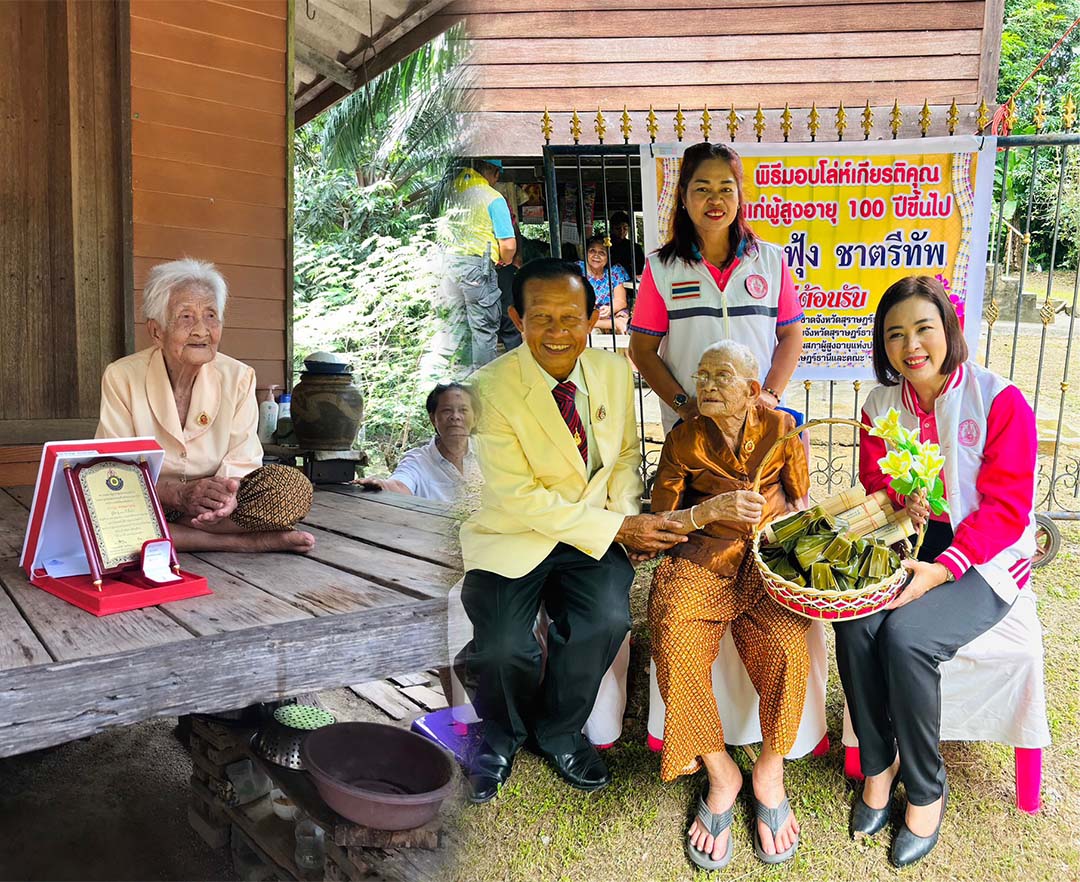พม.สุราษฎร์ฯร่วมปธ.สภาสมาคมผู้สูงอายุ มอบโล่เกียรติคุณแก่ผู้สูงอายุ100ปี