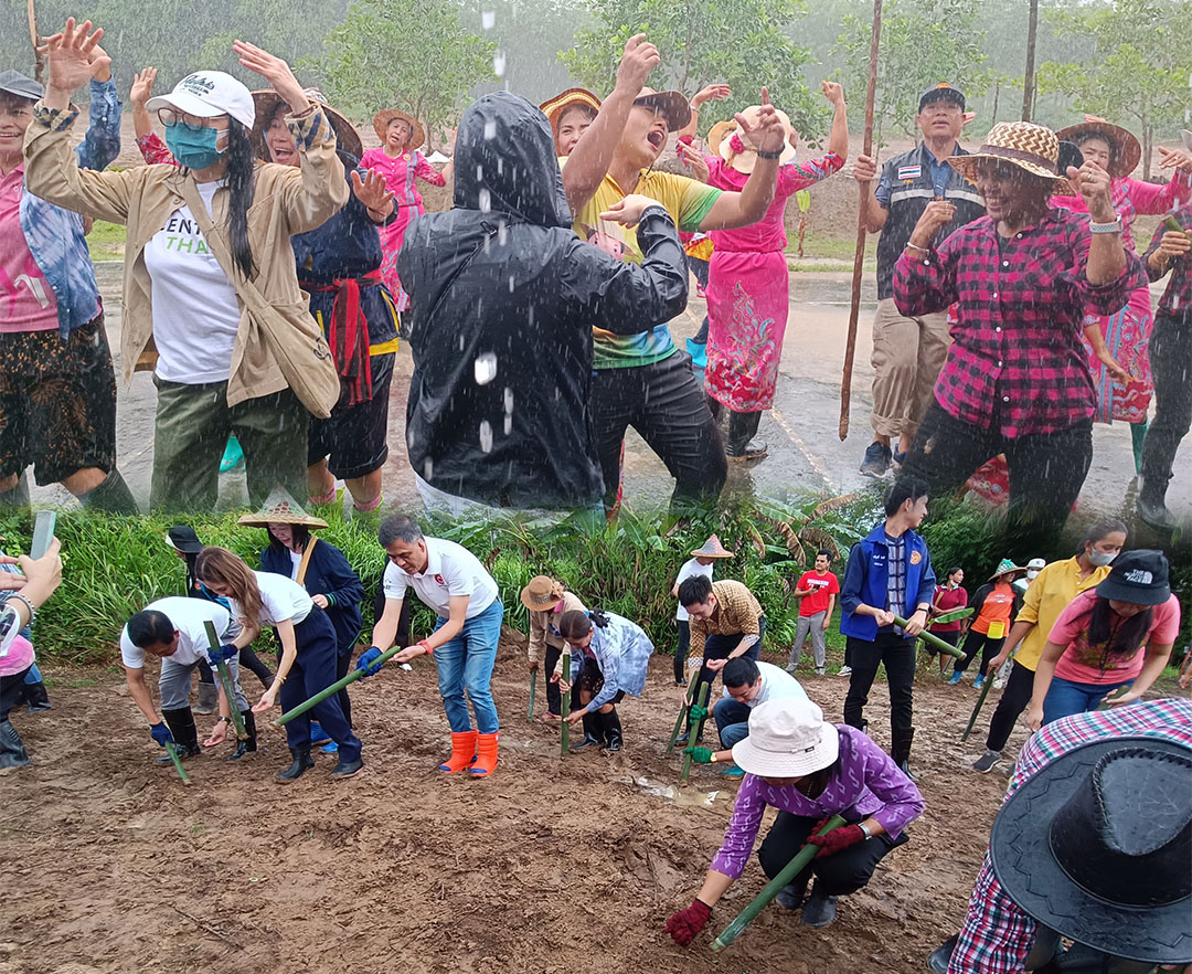 พังงา-สุดสนุก โรงเรียนบ้านตากแดดจับมือเครือข่าย ลงแขกน่ำไร่ปลูกข้าวไร่ดอกข่าแบบโบราณ พร้อมเต้นสู้สายฝน