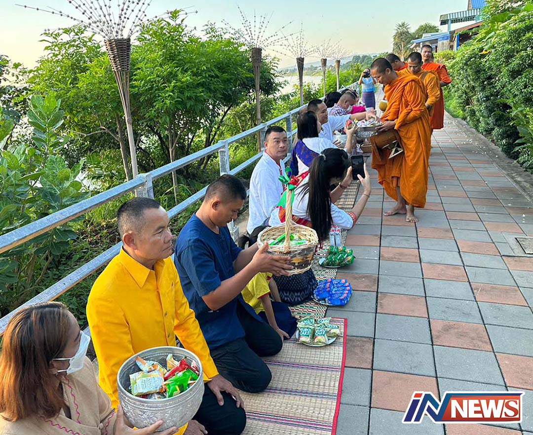 ตม.มุกดาหารร่วมกิจกรรมผ้าไทยใส่บาตรปูสาดริมโขง