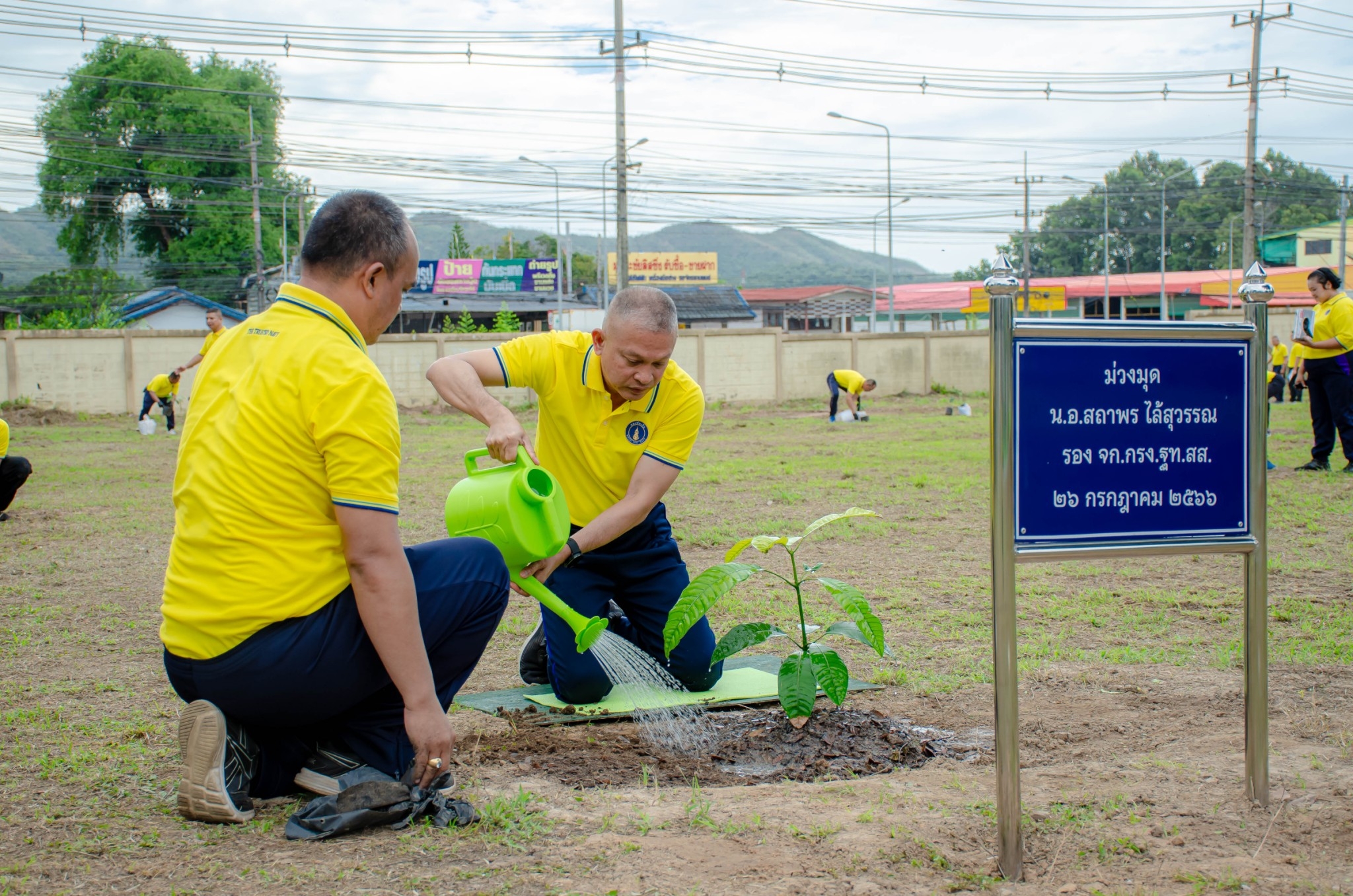 ลพบุรี-อำเภอสระโบสถ์ และเทศบาล ตำบลสระโบสถ์ จัดกิจกรรมจิตอาสา บำรุงรักษาต้นไม้ทรงปลูก (ต้นพิกุล) เพื่อเฉลิมพระเกียรติ