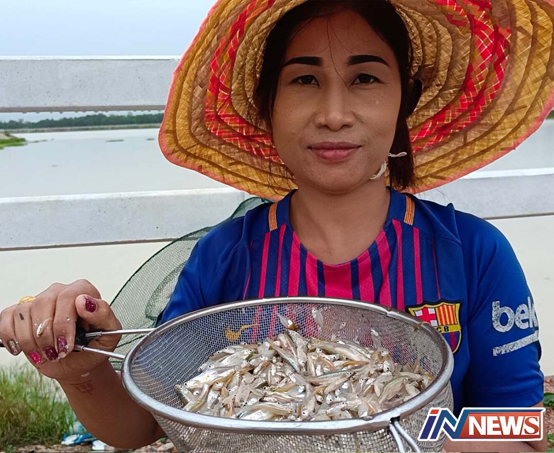 ชาวบ้านออกหาปลาหลังฝนตกใหม่