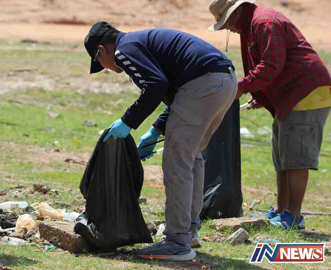 จิตอาสากู้ภัยรวมตัวทำความดีเก็บขยะริมเขื่อนลำปาว