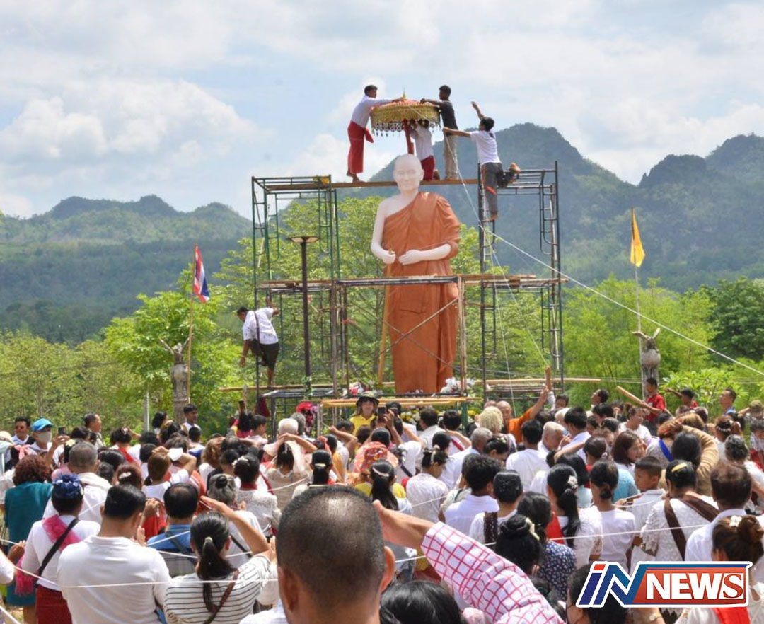 พิธีกางร่มสัปทนรูปปั้นเหมือนหลวงพ่ออุตตมะเทพเจ้าชาวกาญจนบุรี
