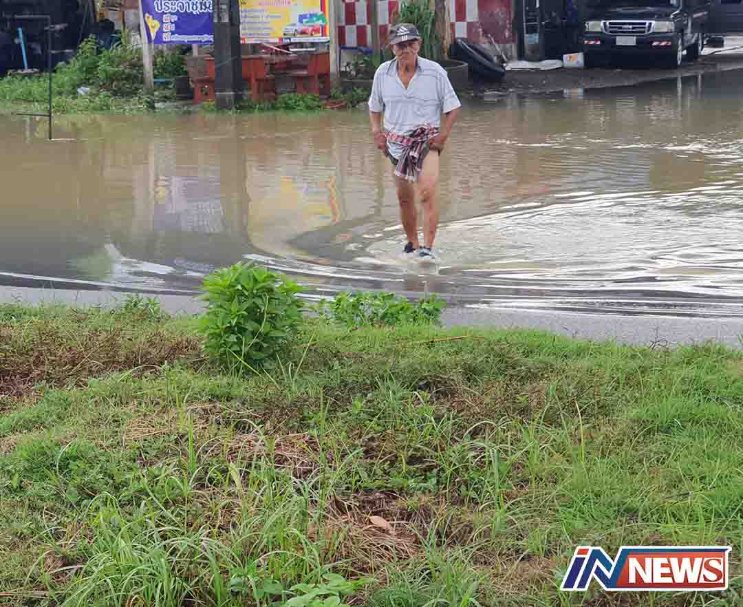 พังงาน้ำยังท่วมขังผิวจราจรเจ้าหน้าที่ปิดถนน