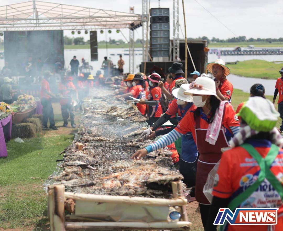 ฮือฮาเผาปลาครึ่งตันเตายักษ์เทศกาลกินปลาเขื่อนลำปาวของดีกาฬสินธุ์