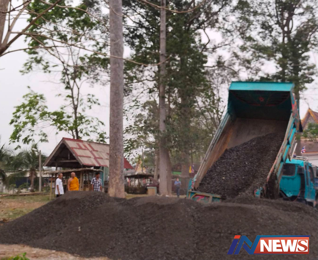 สิงห์รถบรรทุก6ล้อ10ล้อใจบุญกว่า30คัน ตั้งกองผ้าป่านำหินคลุกถวายวัดคีรีวัน