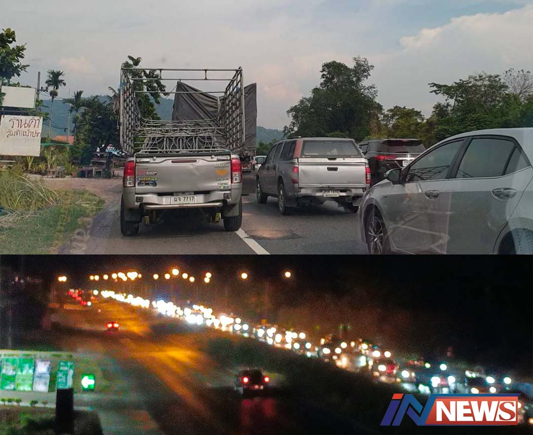 ส่องบรรยากาศเดินทางกลับสู่ภาคอีสาน ถนน304พนมฯ-สระแก้วจราจรเริ่มติดขัด
