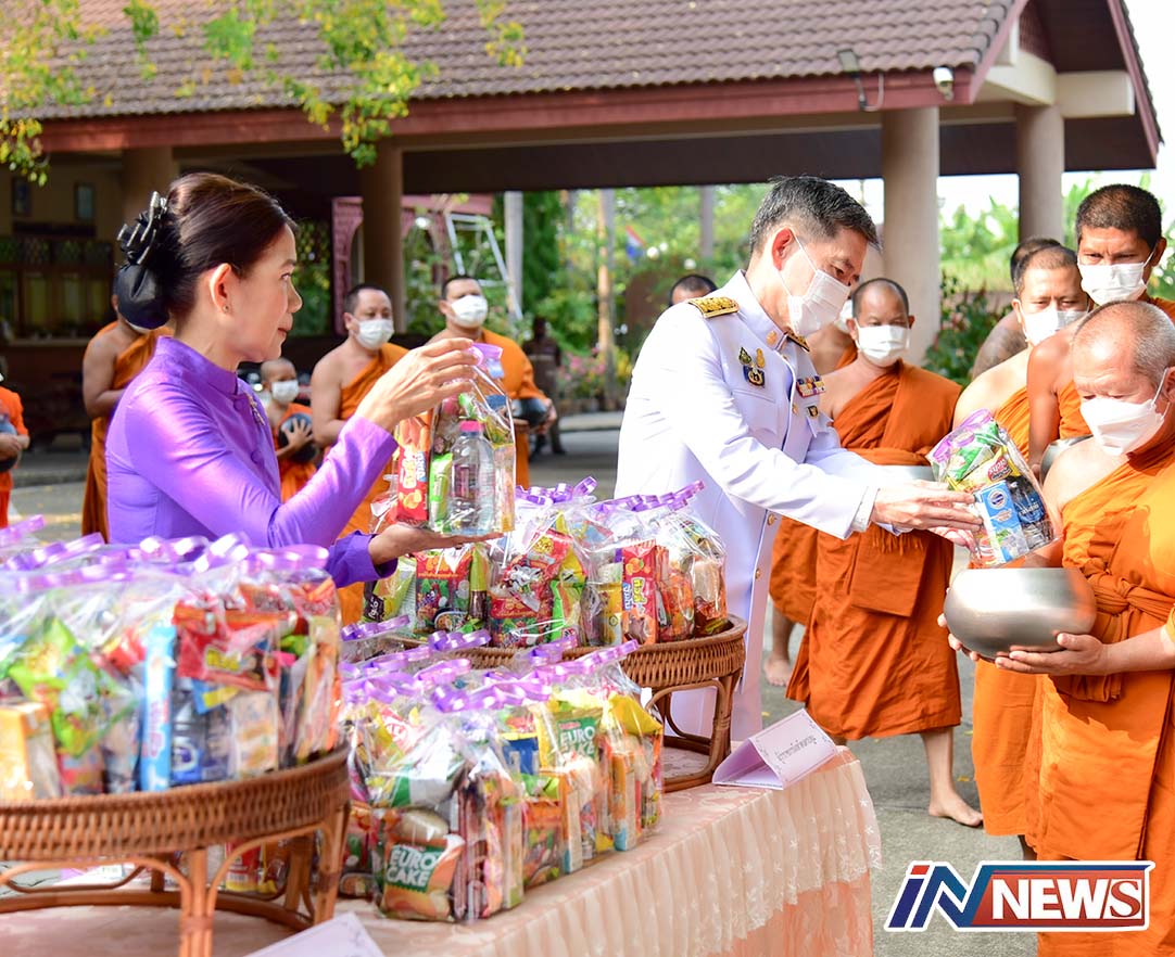 พิธีทำบุญตักบาตรข้าวสารอาหารแห้งแด่พระสงฆ์10รูปถวายเป็นพระราชกุศล
