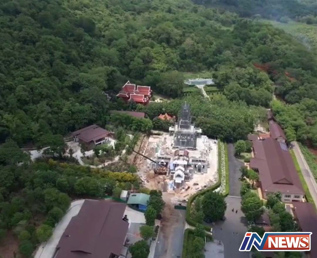 นครราชสีมา-ภาพโดรนมุมสูง วัดป่าธรรมคีรี บนเนื้อที่ 15 ไร่ ค่อนข้างเงียบเหงาพบแต่เพียง คนงานก่อสร้างกำลังทำงาน