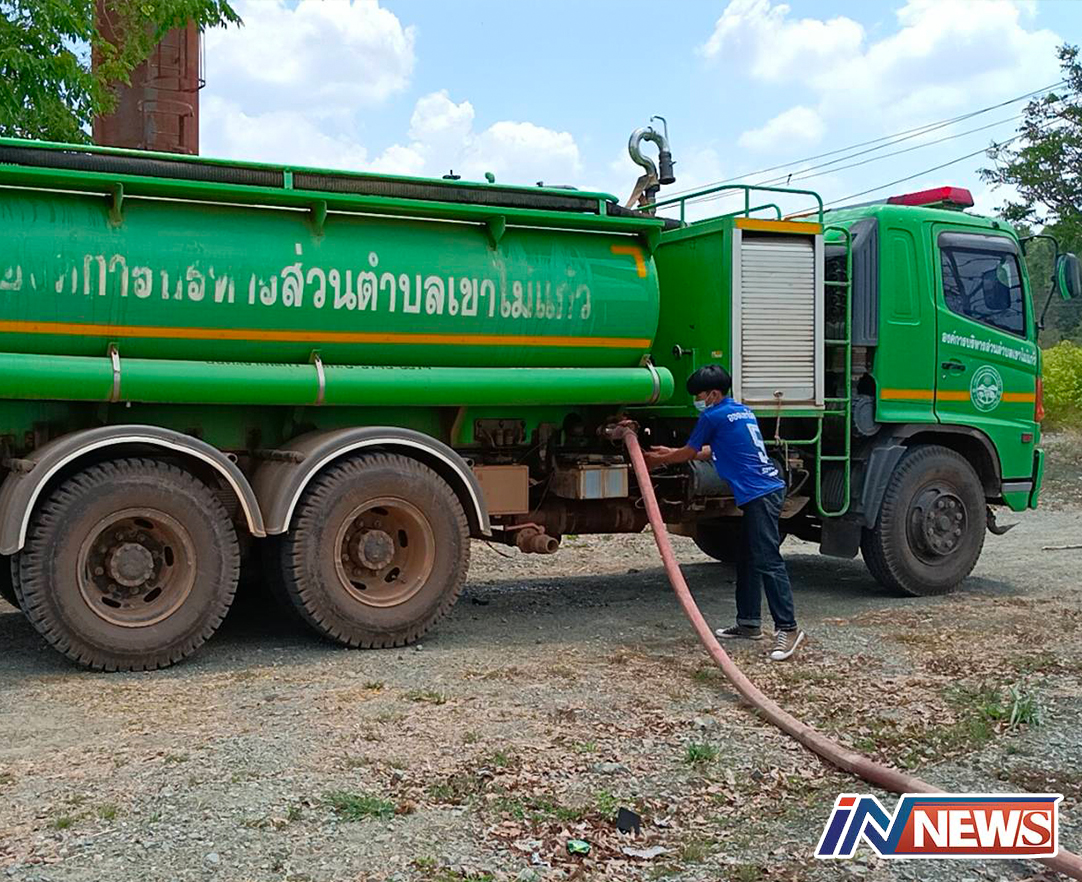 ปราจีนบุรี-น้ำประปาประจำหมู่บ้านแห้งขอดไม่มีน้ำประปาใช้ อบต.เขาไม้แก้วได้นำรถบรรทุกน้ำวิ่งแจกจ่ายให้กับหมู่บ้านดังกล่าวท...