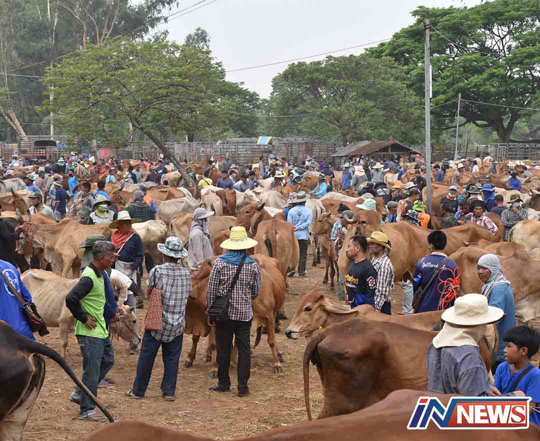 ศรีสะเกษ-ชาวนาศรีสะเกษนำโค-กระบือขายเพื่อลงทุนทำนา ที่ตลาด"นัดโค-กระบือ" สี่แยกส้มป่อยกันคึกคัก