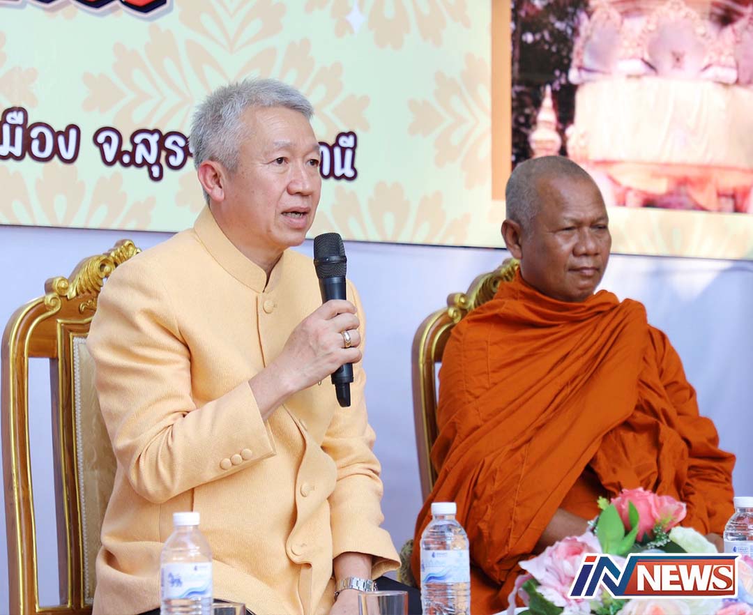 สุราษฎร์ธานี-ที่บริเวณพระธาตุศรีสุราษฎร์ เขาท่าเพชร รองผู้ว่าราชการจังหวัดสุราษฎร์ธานี เป็นประธานจัดแถลงข่าวงานแห่ผ้าห่ม...