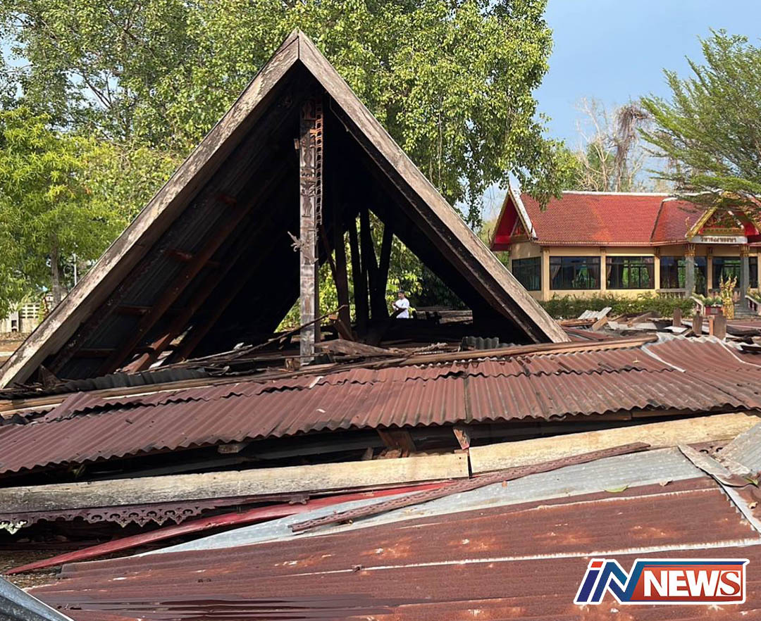 ลมพายุฤดูร้อนพัดศาลาไม้ยองหินอายุ124ปีพังถล่ม
