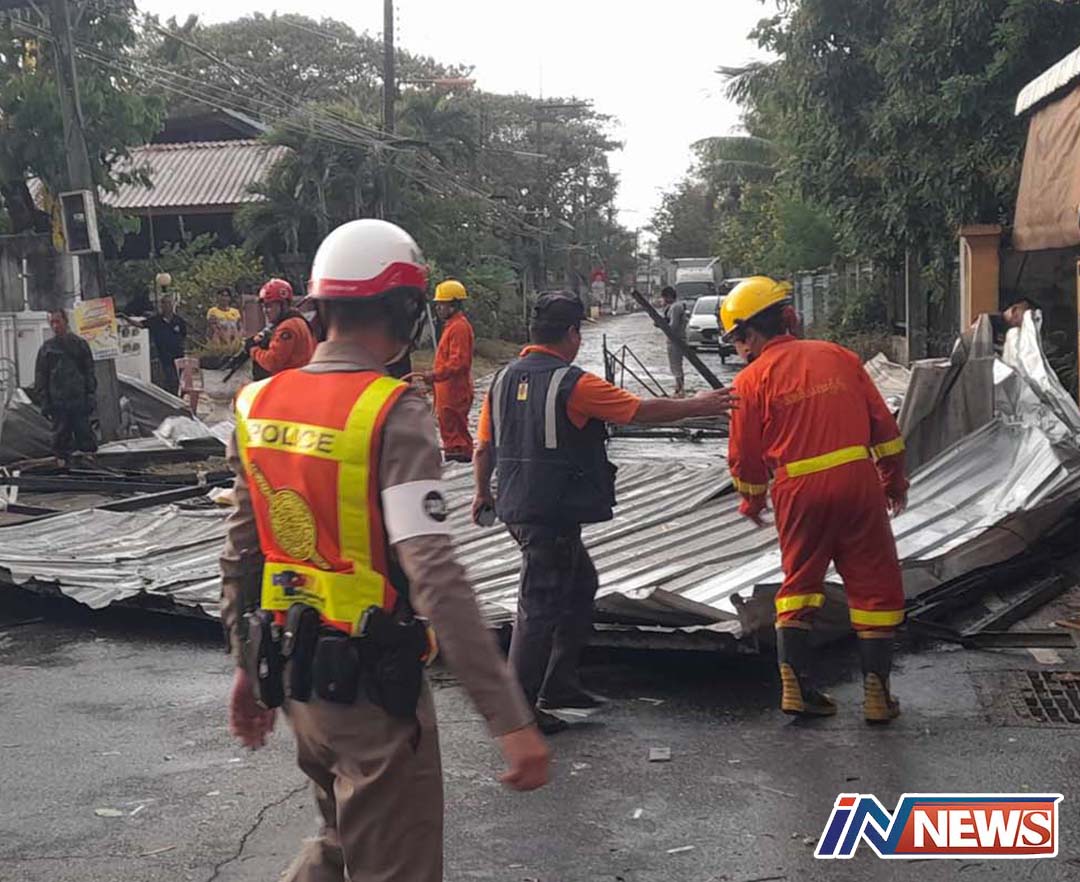 ฝนตกลมกระโชกแรงต้นไม้ล้มบ้านเรือนเสียหายกว่า100ครอบครัว
