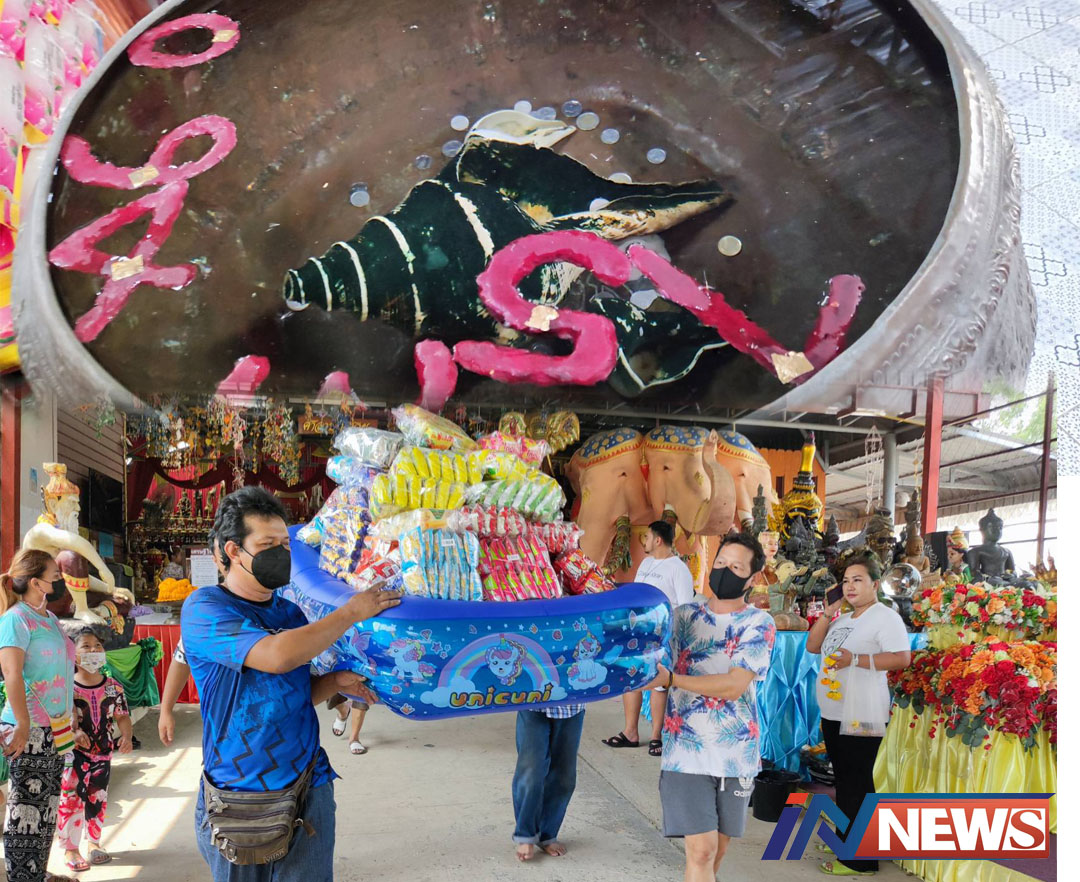 ชาวบ้านสรงน้ำสิ่งศักดิ์สิทธิ์วันสรงกรานต์ พร้อมลุ้นเลขเด็ดจากอาศรมฤาษีเณร