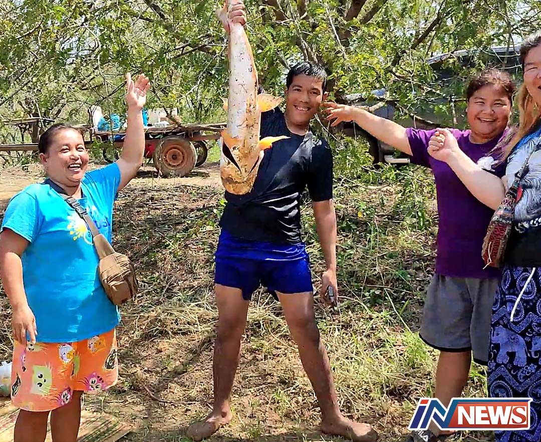 ชาวบ้านพร้อมเซียนแหเฮลงนจับปลาในสระพร้อมทำเมนูเด็ด