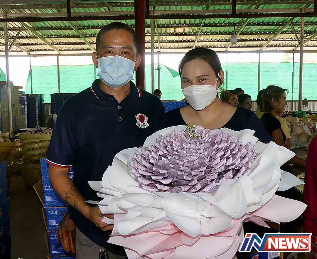 หนุ่มล้งมะพร้าวสั่งช่อดอกไม้ธนบัตร1แสนบาทเซอร์ไพร์สแฟนสาว