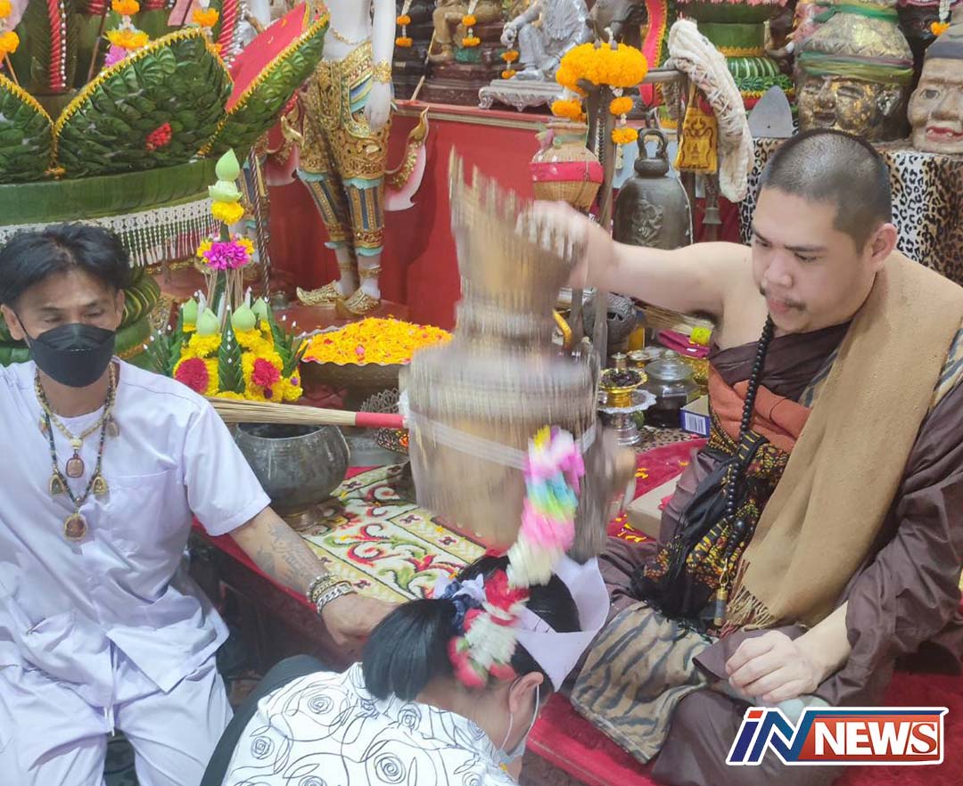ฤาษีเณรครอบครูเหล่าคนสักยันต์ของขึ้นคอหวยส่องเลขโสฬสอ่างน้ำมนต์