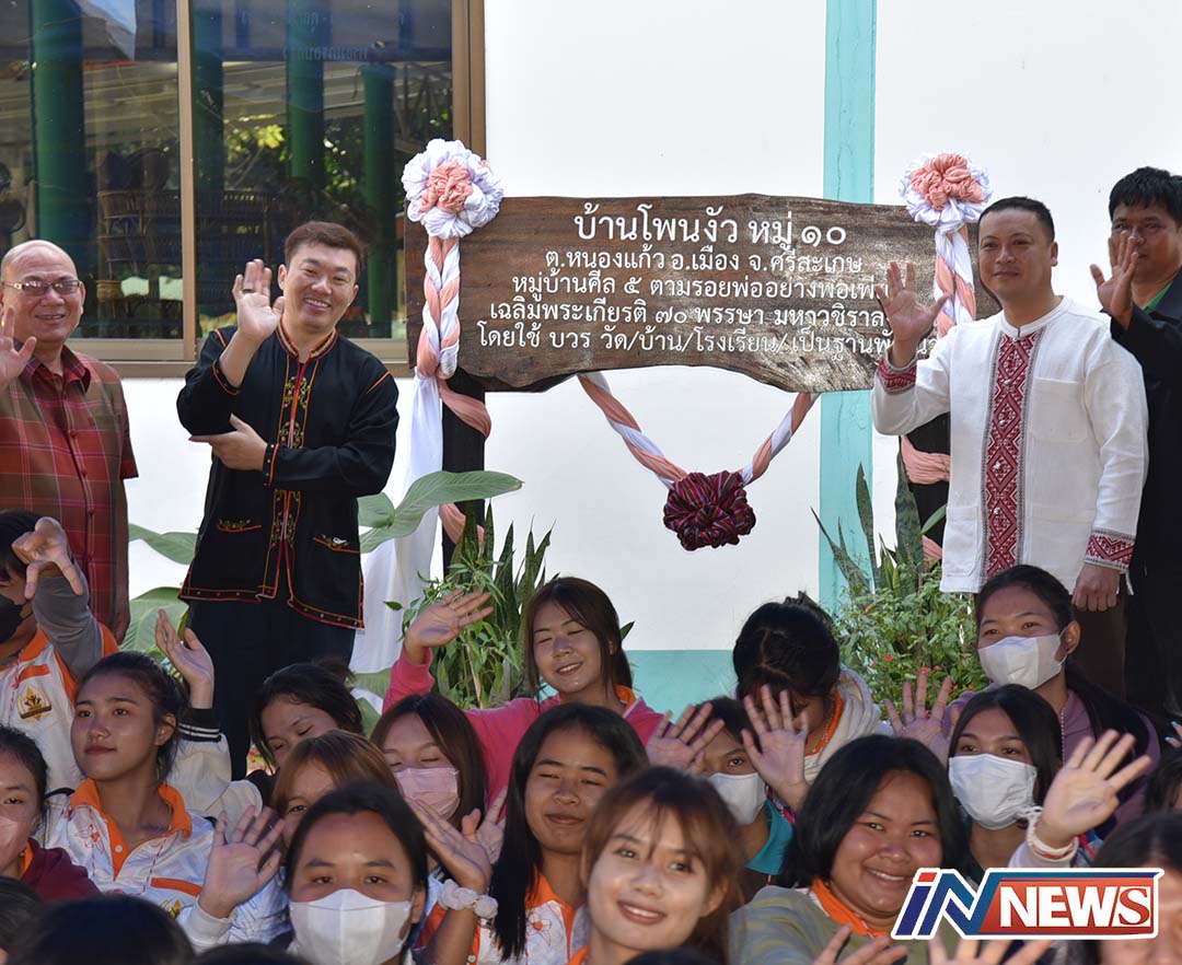 ศรีสะเกษ-ที่บ้านโพนงัว ส.ส.ศรีสะเกษ เขต1เปิดป้ายหมู่บ้าน ศีล 5 ตามรอยพ่ออย่างพอเพียงบ้านโพนงัว อำเภอเมืองศรีสะเกษ