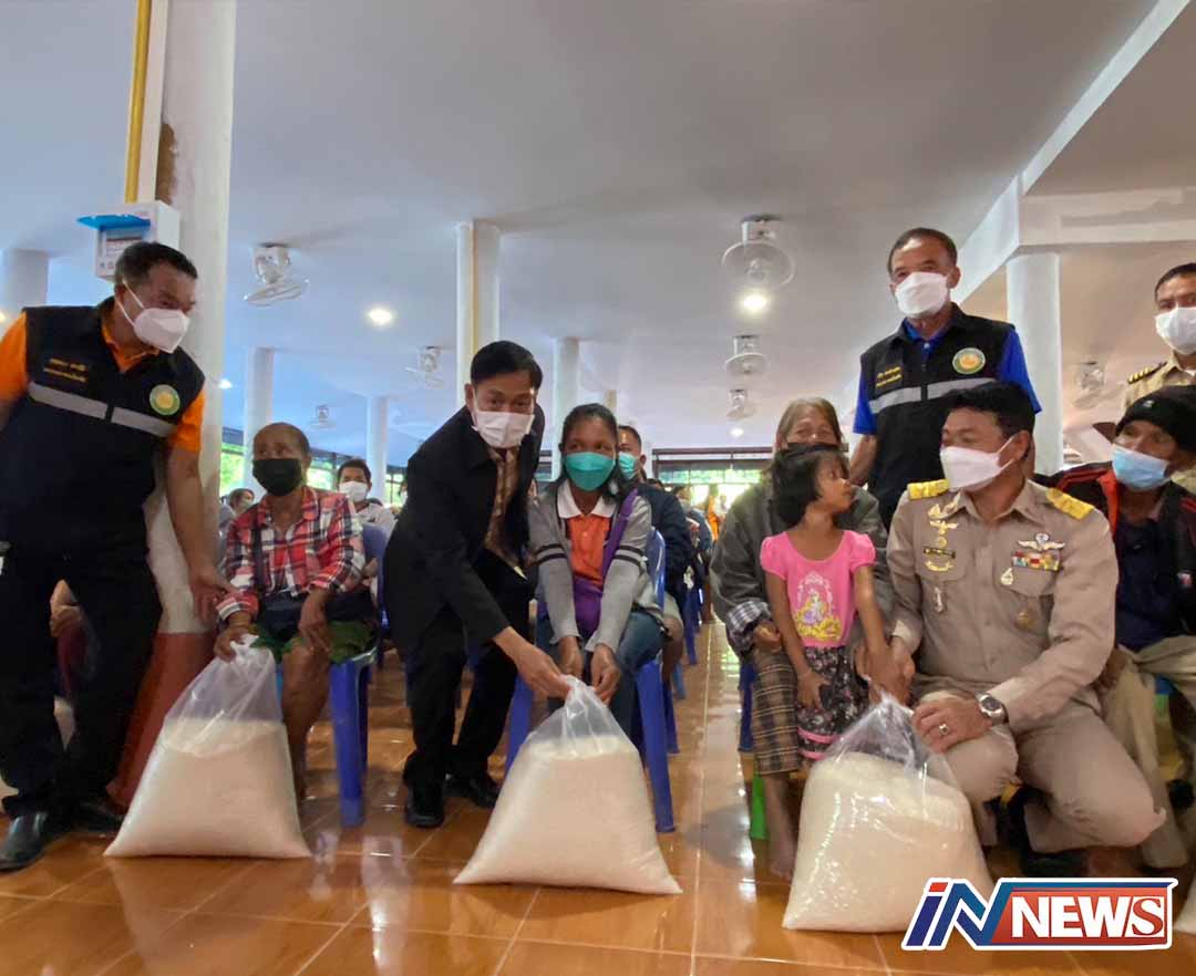 ศรีสะเกษ-ที่ศาลาวัดบ้านหนองบัวไชยวาน ผู้ว่าราชการจังหวัดศรีสะเกษ มอบข้าวสารแก่ผู้ประสบภัยน้ำท่วมในพื้นที่ตำบลโนนสังข์ อำ...