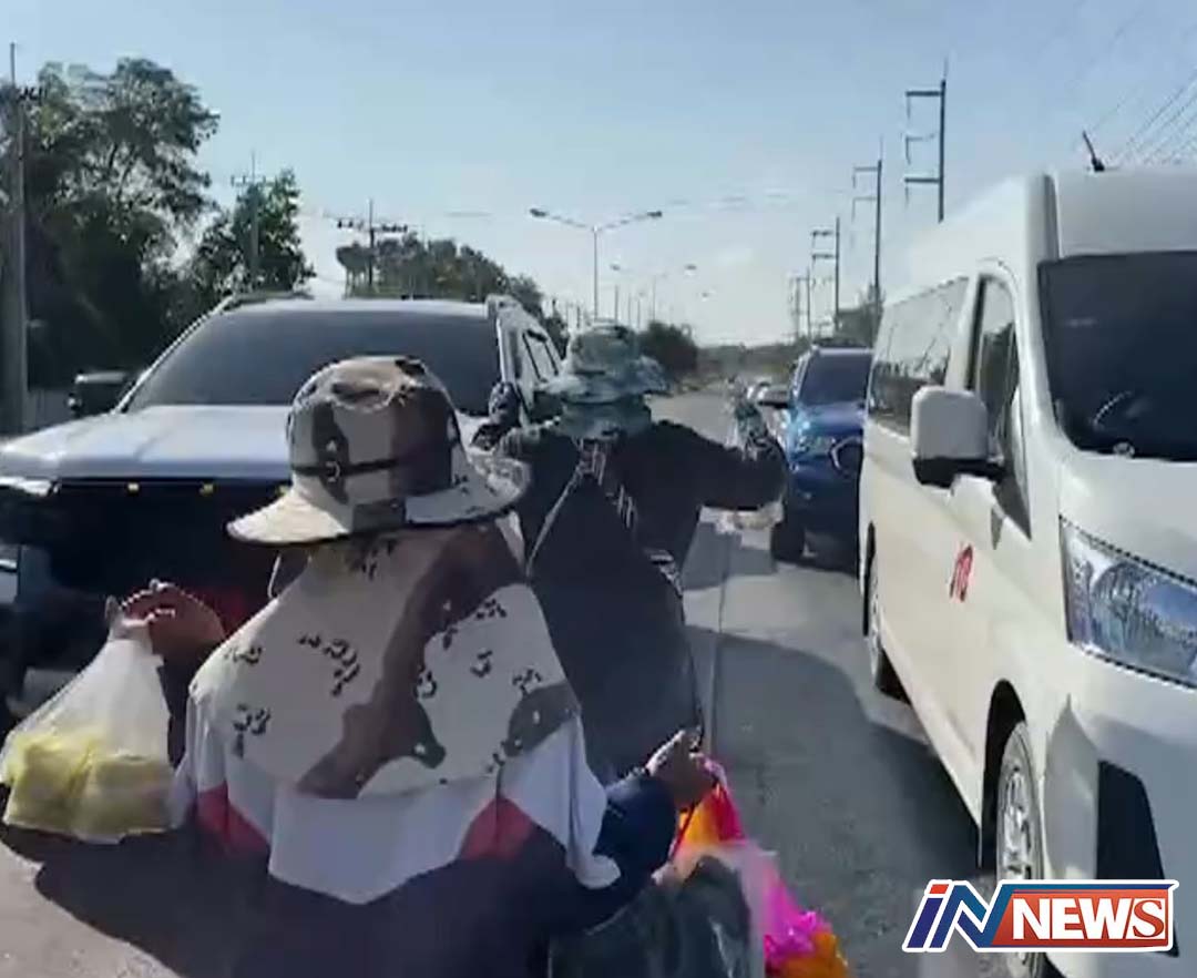 ชัยภูมิ-พ่อค้าขายของตามสี่แยกไฟแดงตุนสินค้าหวังนักเดินทางซื้อกลับบ้าน หักค่าใช้จ่ายเหลือเฉลี่ยวันละ500-600บาท