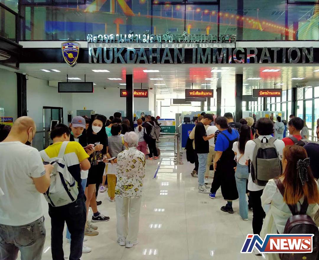 มุกดาหารแรงงานชาวลาวแห่กลับภูมิลำเนาฉลองปีใหม่