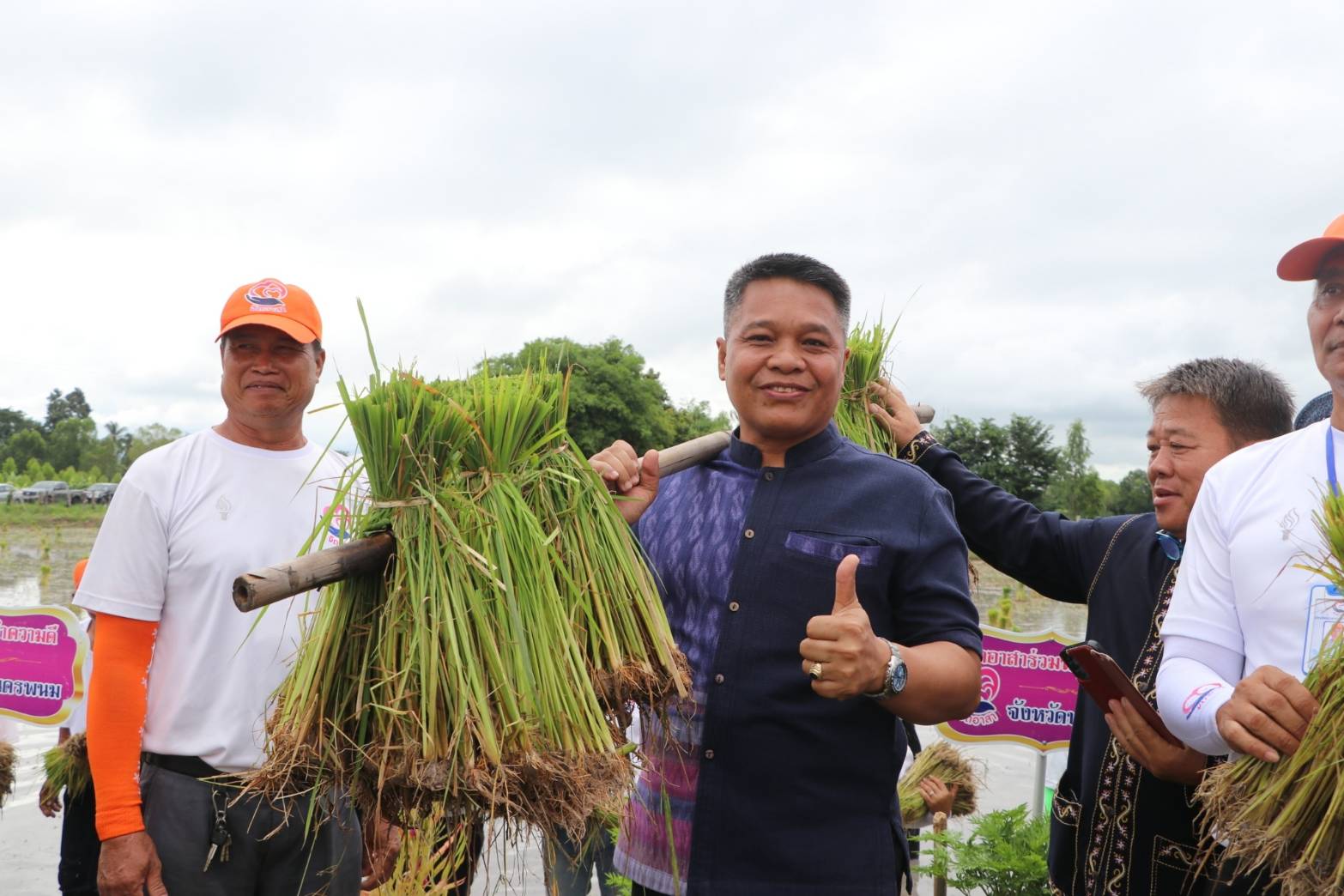กาฬสินธุ์-คณะทำงานจิตอาสาจากหลายพื้นที่ร่วมกันจัดกิจกรรมดำนาก้าวตามรอยพ่อ “ปักดำวันแม่ เก็บเกี่ยววันพ่อ” เฉล...
