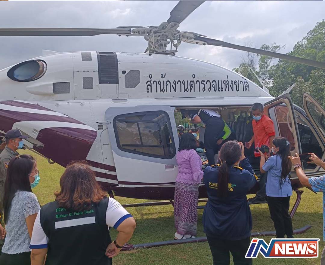 พังงา-โรงพยาบาลพังงา ร่วมกับการบินสำนักงานตำรวจภูธรภาค 8 จัดเฮลิคอปเตอร์ จำนวน 1 ลำ ดำเนินการสนับสนุนให้กับทีมแพทย์และพย...