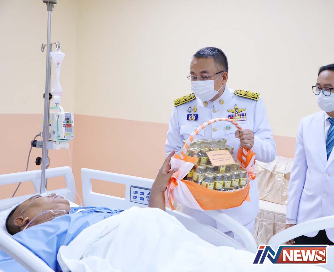 สุราษฎร์ธานี-ผู้ว่าราชการจังหวัดสุราษฎร์ธานี อัญเชิญกระเช้าพระราชทาน มอบให้ตำรวจ ที่ประสบอุบัติเหตุ ระหว่างเดินทางไปปฏิบ...