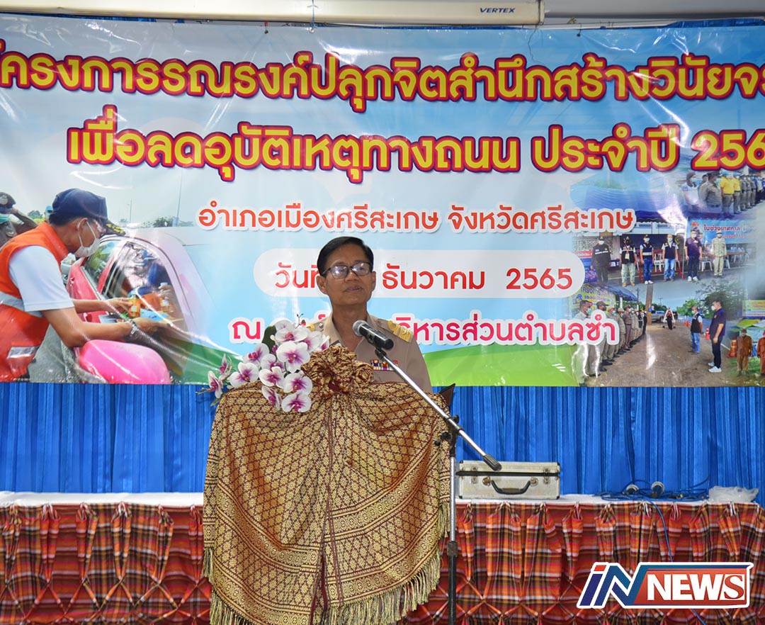 ศรีสะเกษ-ที่องค์การบริหารส่วนตำบลซำ ผู้ว่าฯศรีสะเกษเปิดโครงการรณรงค์ปลุกจิตสำนึกสร้างวินัยจราจร ลดอุบัติเหตุทางถนนช่วงเท...
