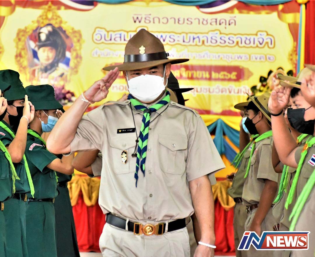สิงห์บุรี-ผู้ว่าราชการจังหวัดสิงห์บุรีในฐานะผู้อำนวยการลูกเสือจังหวัดสิงห์บุรี เป็นประธานพิธีวางพวงมาลาและถวายราชสดุดี เ...