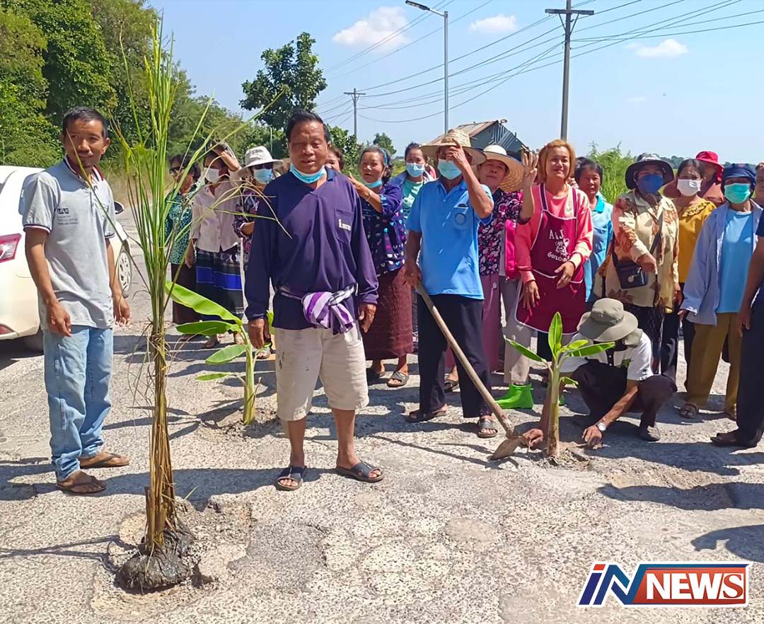 ชาวบ้านโวยถนนพังกว่า 20 ปี ปลูกกล้วยข้าวประชด