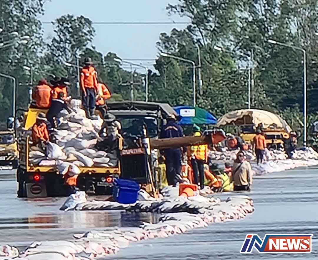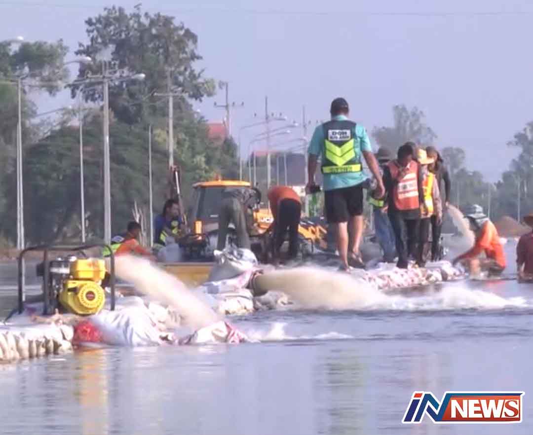 แขวงทางหลวงกาฬสินธุ์ระดมสูบน้ำเร่งกู้ถนนคืนเส้นทางจราจร