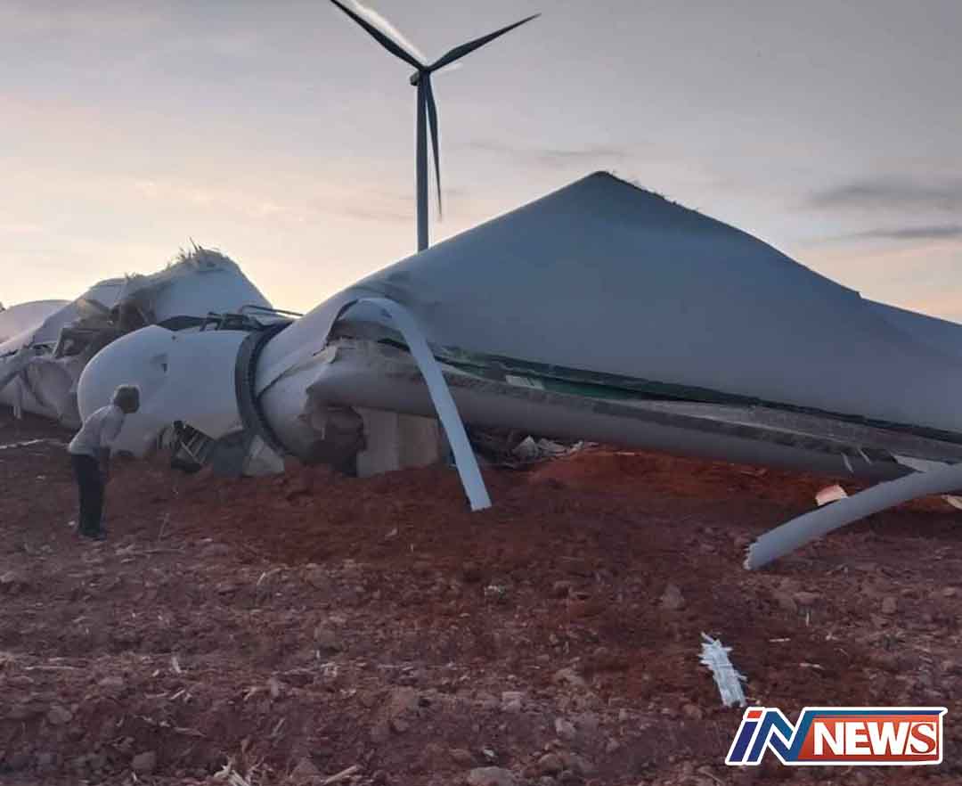ชัยภูมิ-เกิดเหตุกังหันลมระเบิดเสียงดังสนั่น ชิ้นส่วนกระจายทั่วทั้งบริเวณรอบต้นกังหัน บริษัทกังหันลมต้องนำแท่งแบริเออร์ขน...