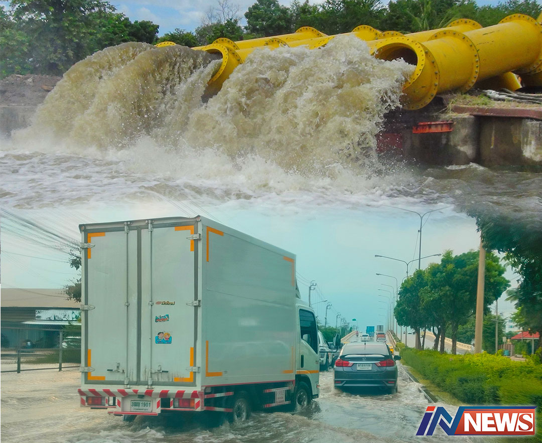 ฉะเชิงเทรา-เร่งระบายน้ำลาดกระบัง ทิ้งทะเลที่ประตูน้ำท่าถั่วลงสู่แม่น้ำบางปะกง 6 ล้าน ลบม.ต่อวัน หลังกรมชลฯ ติดตั้งเครื่อ...