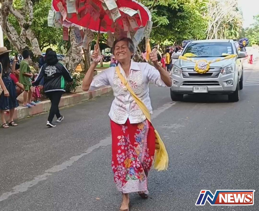 คุณยายโชว์สเต็ปรำต้อนรับขบวนแห่กฐินแย่งซีนนางรำ