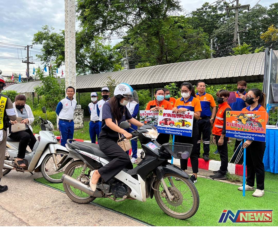 สำนักงานปภ.หนองบัวลำภูได้จัดกิจกรรม kick off รณรงค์สวมหมวกนิรภัย100%