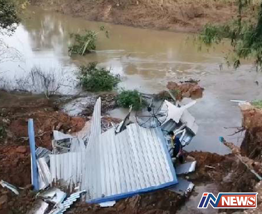 ปราจีนบุรี-ที่บ้านปากน้ำ หมู่ที่ 1 ต.บ่อทอง อ.กบินทร์บุรี เกิดเหตุตลิ่งคลองพระปรงสไลด์พัดบ้านชาวบ้านพังทั้งหลัง