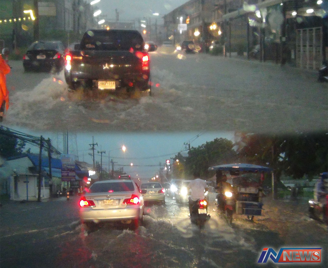 ฝนถล่มแปดริ้วแค่30นาทีถนนในตัวเมือง กลายเป็นคลองมีระดับน้ำสูง30-40ซม.