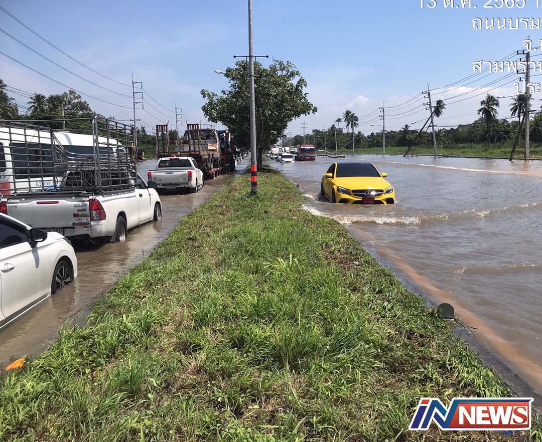 ระดับน้ำท่าจีนเอ่อท่วมถนนบรมราชชนนีอีก แจ้งเลี่ยงทางพุทธมณฑลสาย4-5