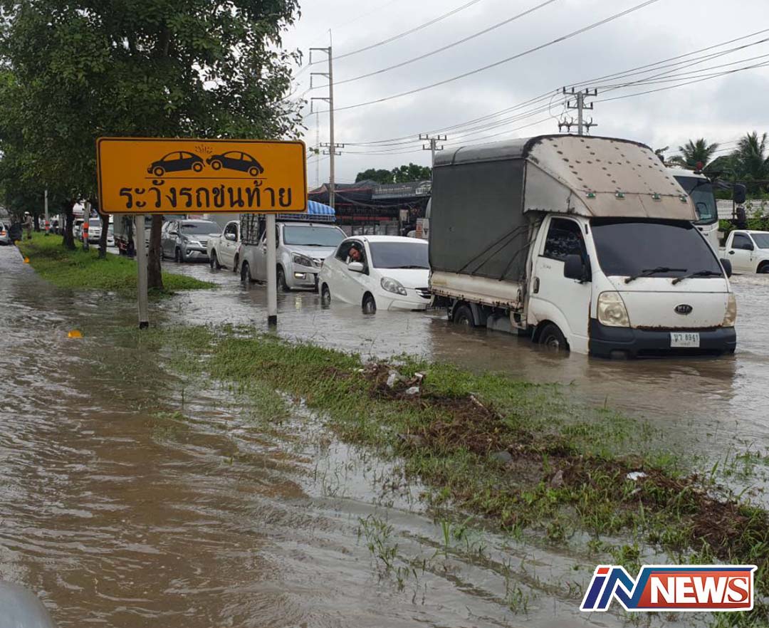 ฝนตกช่วงเช้าน้ำทะเลหนุนถนนพระปิ่นเกล้า-นครปฐม รถติดวิกฤติ