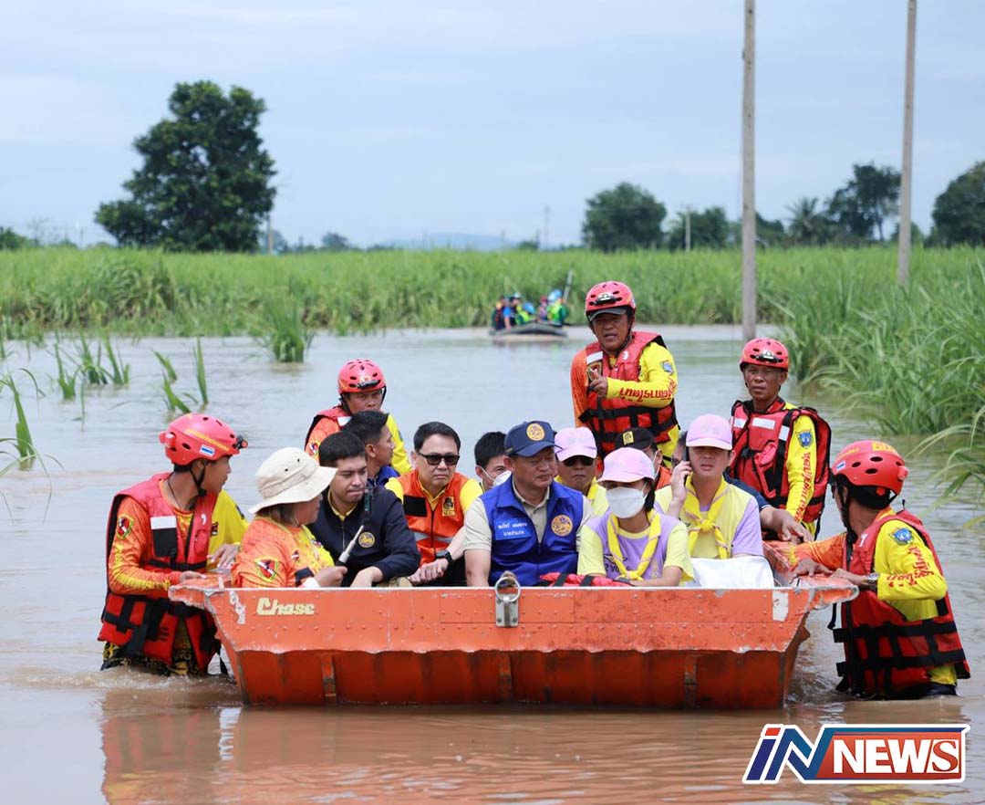 ผู้ว่าฯร้อยเอ็ด ลุยน้ำท่วมมอบถุงยังชีพและจัดตั้งโรงครัวพระราชทาน