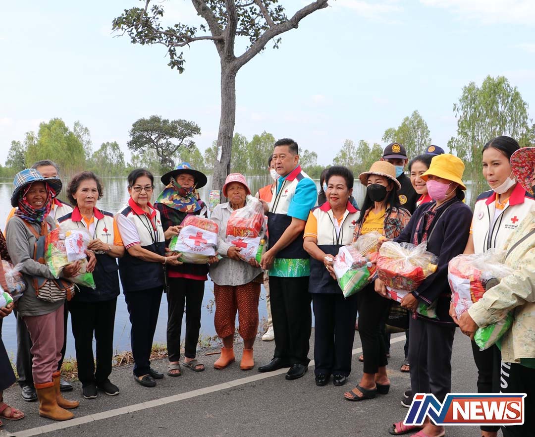 ร้อยเอ็ด-ที่ว่าการอำเภอโพนทราย ผู้ว่าราชการจังหวัดร้อยเอ็ด นำหัวหน้าส่วนราชการ และเหล่ากาชาดจังหวัดร้อยเอ็ด ลุยน้ำท่วมมอ...