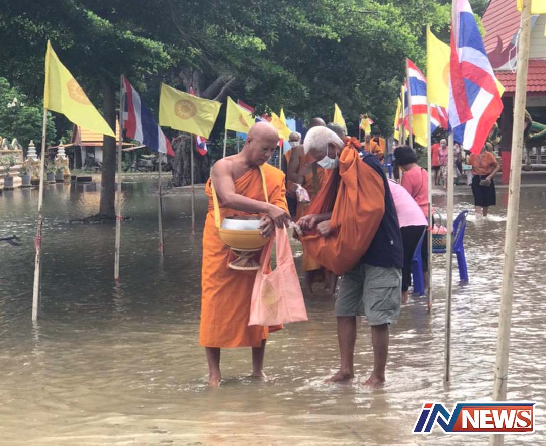 หลายวัดปราจีนฯโบสถ์น้ำท่วมใช้ตักบาตรเทโวประเพณีจุดอื่น-ลุยน้ำตักบาตร